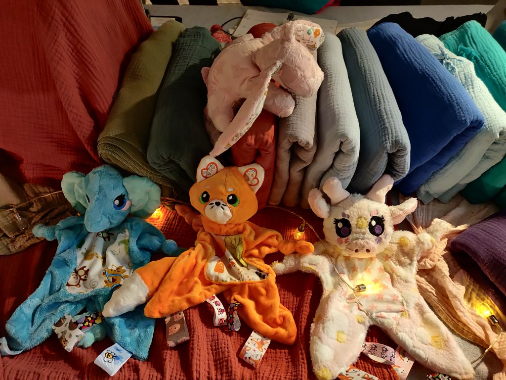 Voici quelques créations exposées au Marché de Noël à Baden sur le stand de ma tante préférée qui a ses propres créations de couture, dont voici le liens.